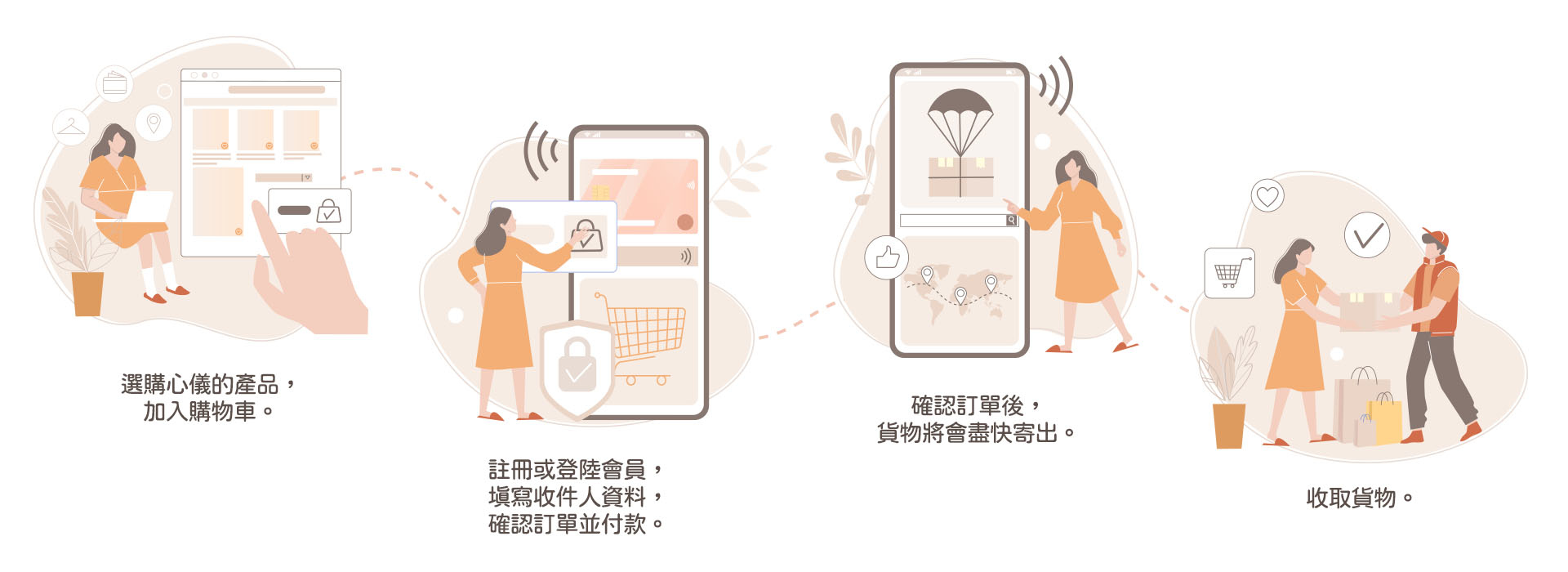 會員身份訂購:閣下可以把想購買的東西放入購物車後,然後進行結算,訂單通知和出貨通知將會發送到閣下結帳時所提供的電郵地址,你亦可以隨時登入帳戶查詢訂單狀態。