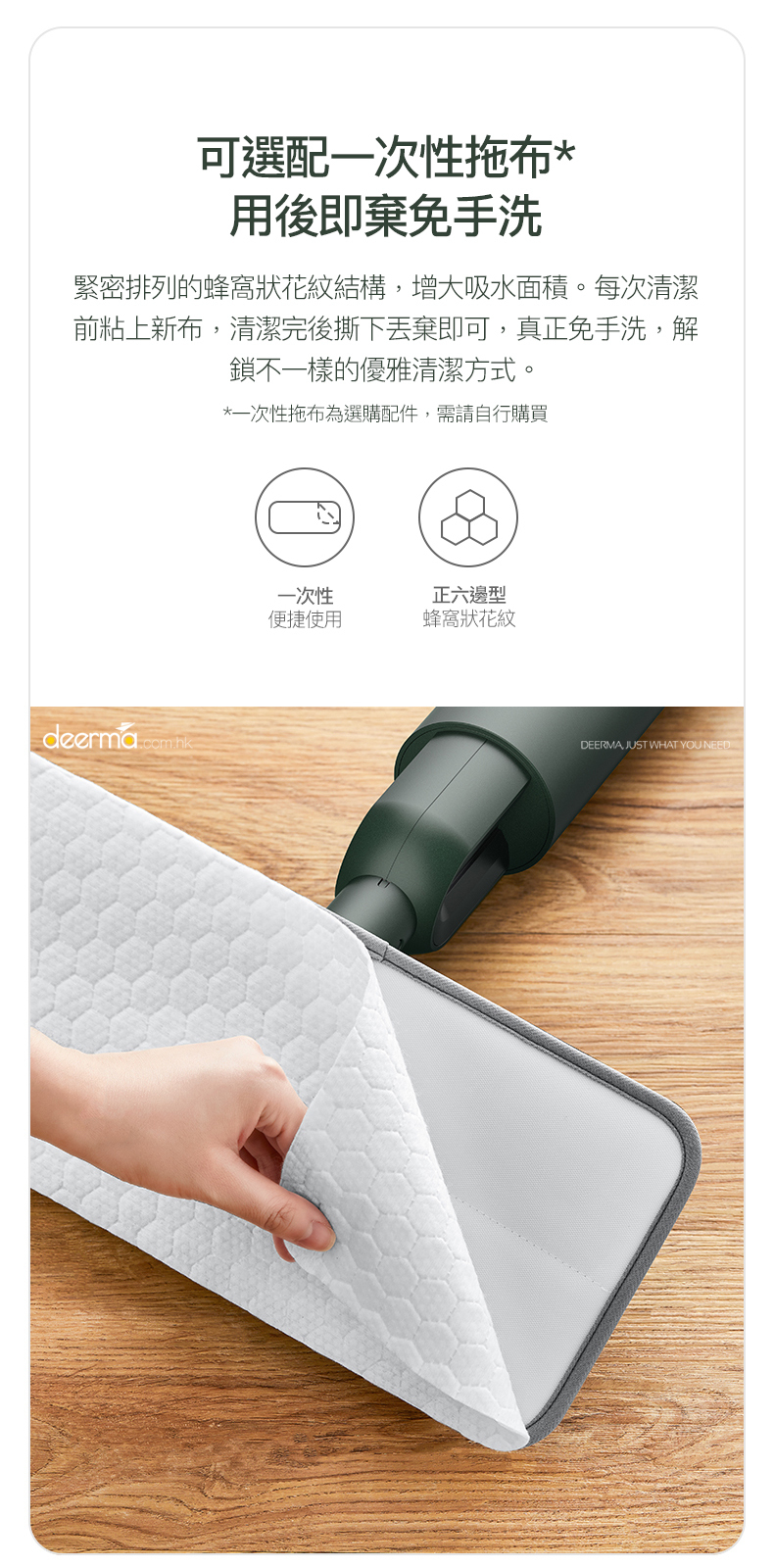 3層複合結構拖布,勾住灰塵顆粒,吸水性≥90%*,乾濕可用,拖地