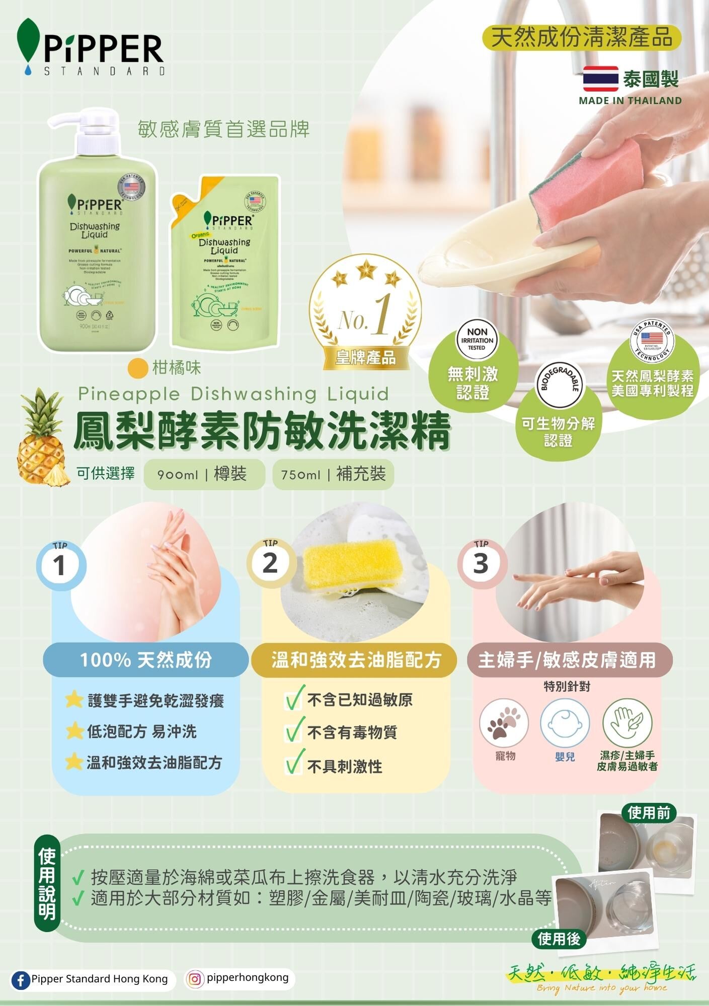 Pipper Standard 餐具洗滌產品 - 新香味!清新的香氣,帶有留蘭香的香氣。