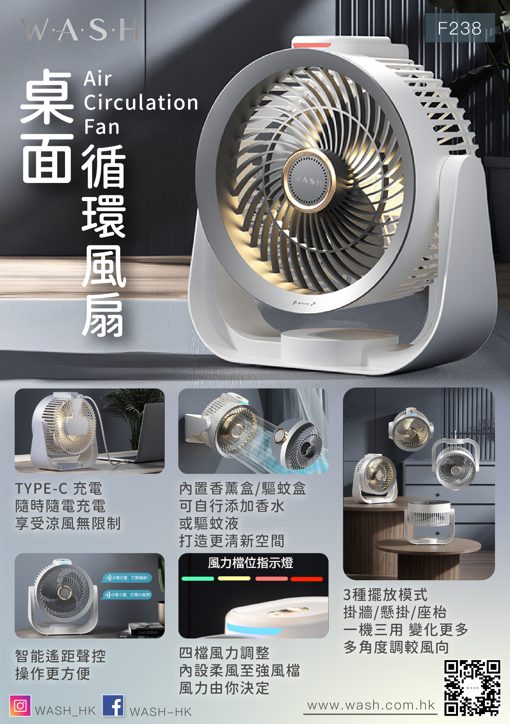・3種擺放模式掛牆/懸掛/座枱一機三用 變化更多多角度調較風向